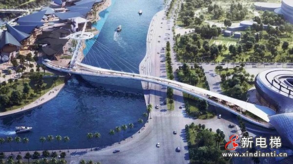 在海南省三亞市海棠灣,有這么一座橋,全長233.4米,由主橋和引橋兩部分組成,其中主橋?yàn)橹骺?8.8米鋼斜塔雙邊工字鋼梁獨(dú)塔斜拉橋,是世界上第一座獨(dú)塔萬向鉸斜拉行人景觀橋。因外觀神似一枚托舉而起指向云天的銀色鉆戒而得名“云戒”,成為三亞國際免稅城的獨(dú)特標(biāo)志和打卡圣地。萊茵電梯為景觀橋量身設(shè)計并安裝了一臺傾斜角度為60°的斜行電梯,運(yùn)行斜長46.2米,垂直提升高度為40米。