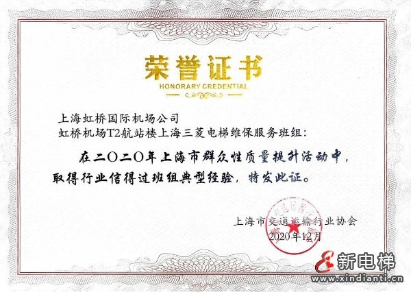 喜訊 | 上海三菱虹橋機(jī)場T2航站樓維保班組喜獲“質(zhì)量信得過班組”殊榮