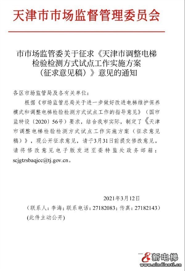 據(jù)公開消息顯示,目前全國僅廣東省、湖北省、天津市三?。ㄖ陛犑校╇娞荻ㄆ跈z驗免征涉企行政事業(yè)性收費。除了廣東省、湖北省、西藏自治區(qū)等有限幾個?。ㄗ灾螀^(qū)、直轄市)尚未出臺56號實施方案,其他均省(自治區(qū)、直轄市)均已出臺。日前,天津市市場監(jiān)管委印發(fā)了《天津市調(diào)整電梯檢驗檢測方式試點工作實施方案(征求意見稿)》,文件指出:本市公益性檢驗檢測機構(gòu)不得在本市承擔承擔電梯檢測活動。