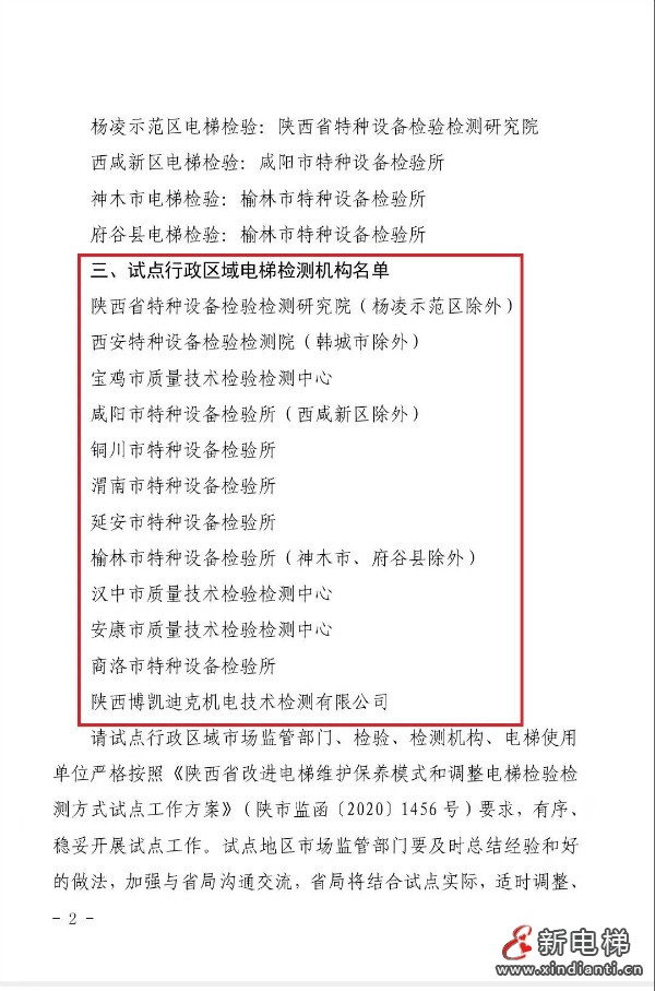 陜西省局公布12家電梯試點檢測機構(gòu)名單!