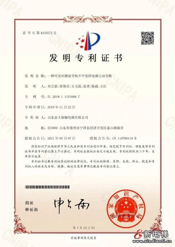 給力!山東富士制御電梯再添兩項(xiàng)發(fā)明專利!