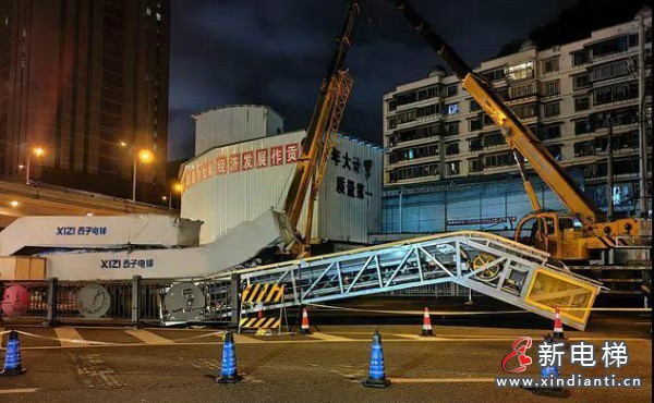 2021年6月1日凌晨時分,由西子電梯科技提供的6臺自動扶梯正在黔靈山公園地下通道進行新電梯吊裝工作,現(xiàn)場多家媒體對此項重點民生改造工程進行報道。