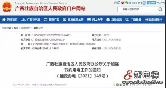 廣西壯族自治區(qū)人民政府辦公廳印發(fā)《關(guān)于加強(qiáng)節(jié)約用電工作的通知》,要求機(jī)關(guān)辦公場所4層及以下樓層停止使用電梯。商場、賓館、餐廳、娛樂場所等自動扶梯設(shè)置為變頻模式,無人乘坐時(shí)自動停梯。