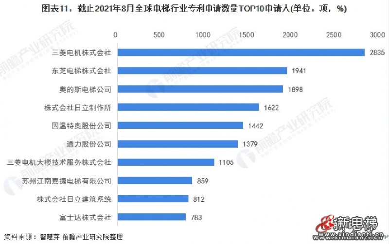 全球電梯行業(yè)專利申請(qǐng)概況分析,蘇州江南嘉捷成黑馬,專利申請(qǐng)數(shù)量居前八