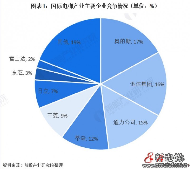 奧的斯電梯公司全球市場(chǎng)份額最大,達(dá)到17%;三菱電機(jī)為9%,排第五。
