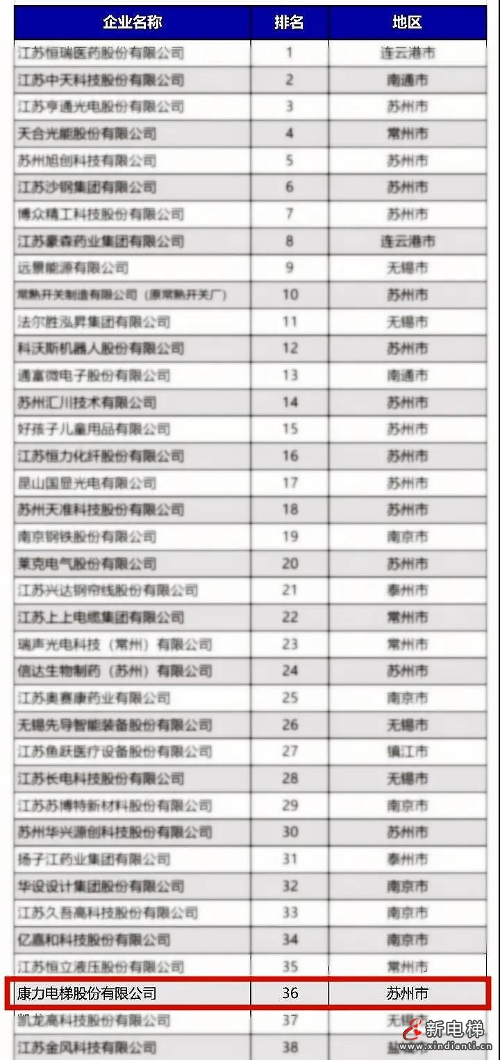 硬核!康力電梯高居“2021江蘇民營企業(yè)創(chuàng)新100強”36位