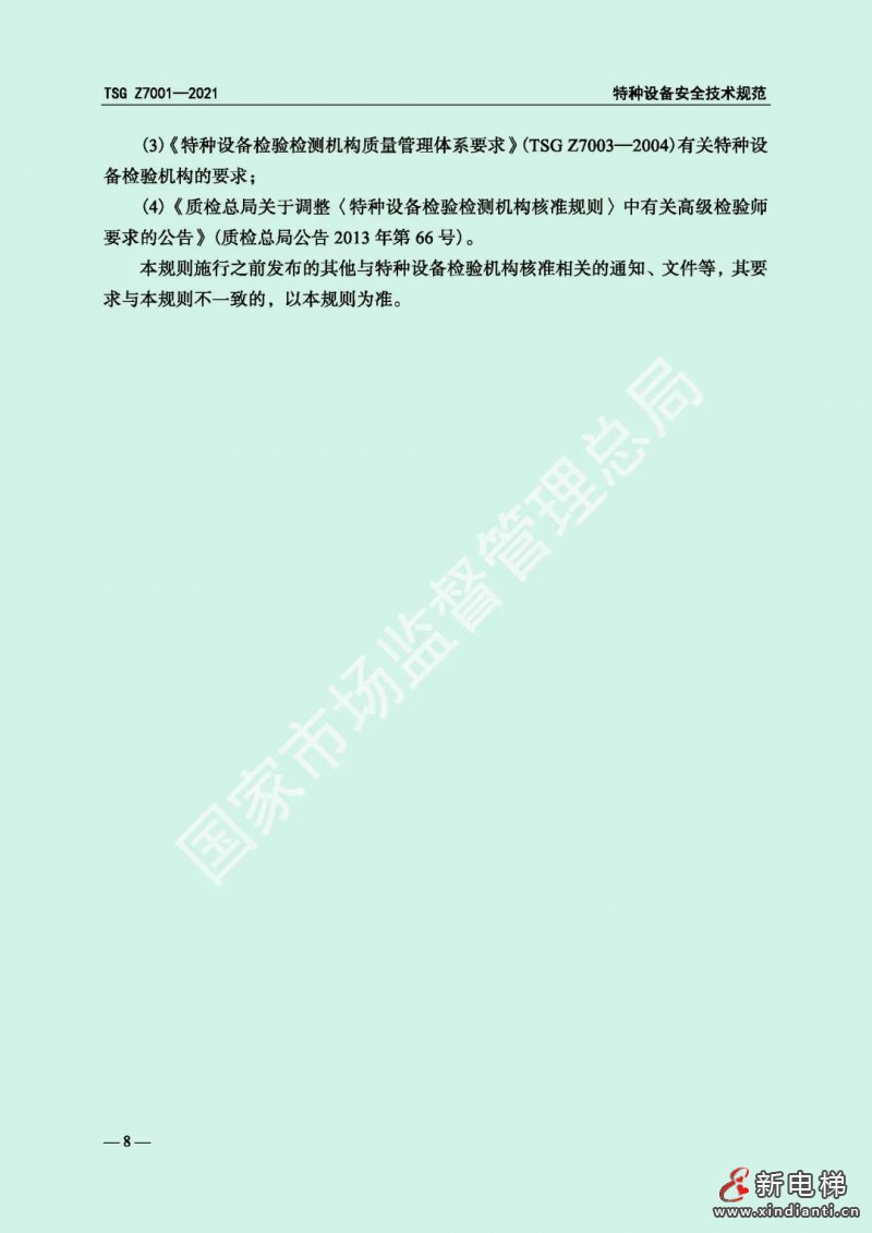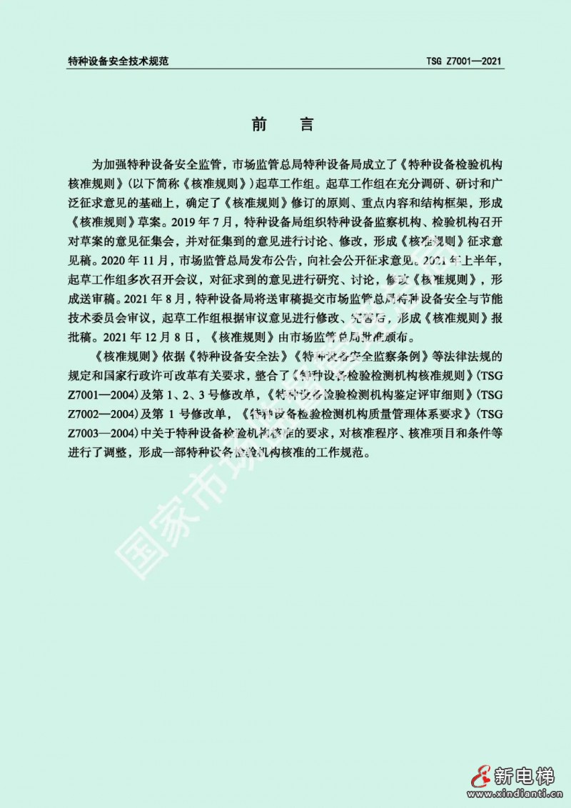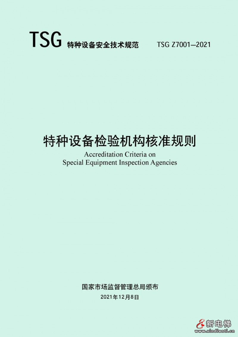 核心提示:為加強(qiáng)特種設(shè)備安全監(jiān)管,市場(chǎng)監(jiān)管總局對(duì)《特種設(shè)備檢驗(yàn)檢測(cè)機(jī)構(gòu)核準(zhǔn)規(guī)則》(TSG Z7001—2004)進(jìn)行了修訂,形成《特種設(shè)備檢驗(yàn)機(jī)構(gòu)核準(zhǔn)規(guī)則》(TSG Z7001—2021)