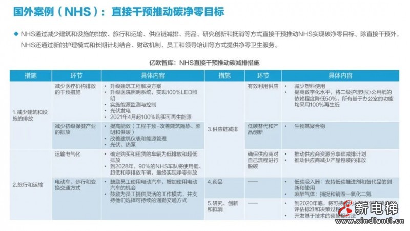 英國國家醫(yī)療服務體系(National health Service, NHS)自上而下推動英國醫(yī)療體系碳減排,打造零碳組織。NHS提出到2040年實現(xiàn)凈零排放,并雄心勃勃地表示在2028-2032年實現(xiàn)80%的減排。在碳減排具體措施方面,NHS通過減少建筑和設施的排放、旅行和運輸、供應鏈減排、藥品、研究創(chuàng)新和抵消等方式直接干預推動NHS實現(xiàn)碳凈零目標。