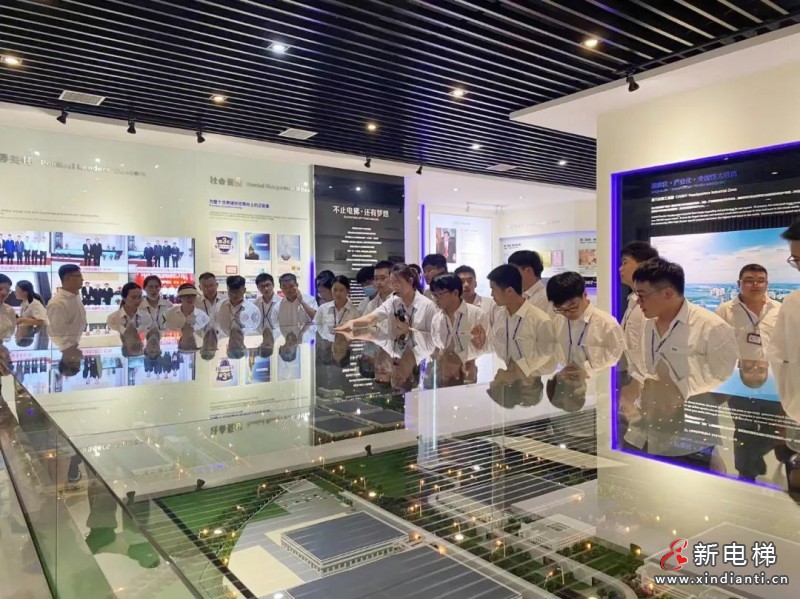 典禮儀式結束后,培訓中心帶領大學生們參觀了公司試驗塔、展廳、扶梯車間、電梯車間。