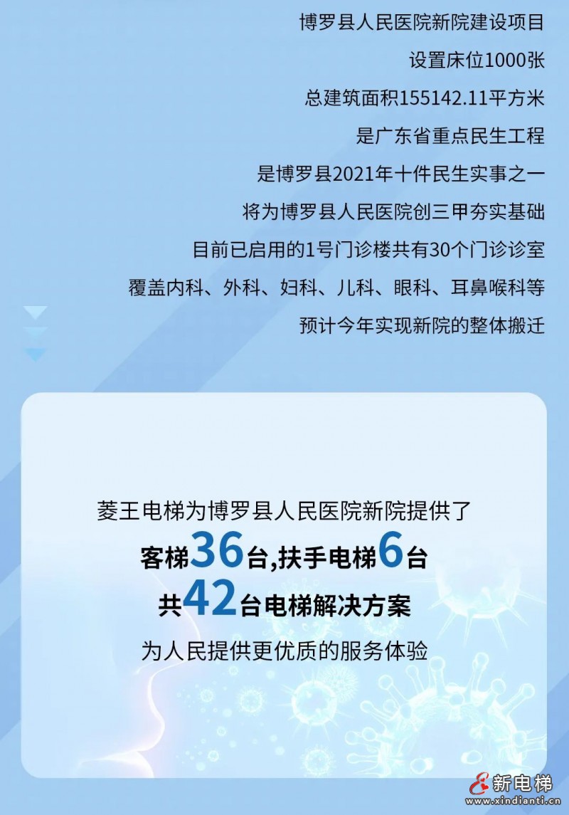 核心提示:菱王電梯為博羅縣人民醫(yī)院新院提供了客梯36臺,扶手電梯6臺,共42臺電梯解決方案,為人民提供更優(yōu)質的服務體驗。