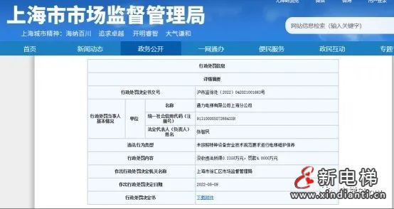 通力電梯上海分公司違法被罰 未按安全規(guī)范要求維保