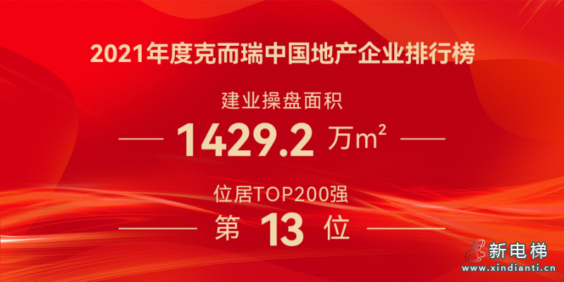 2021年度克而瑞中國地產(chǎn)企業(yè)排行榜:建業(yè)操盤面積1429.2萬㎡,位居TOP200強(qiáng)第13位。