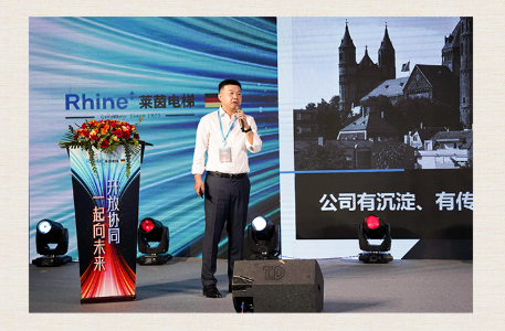公司董事長蔣黎明先生發(fā)表致辭,代表萊茵電梯熱烈地歡迎各位萊茵的合伙人、新老合作伙伴,并對大家的到來表示誠摯的感謝。