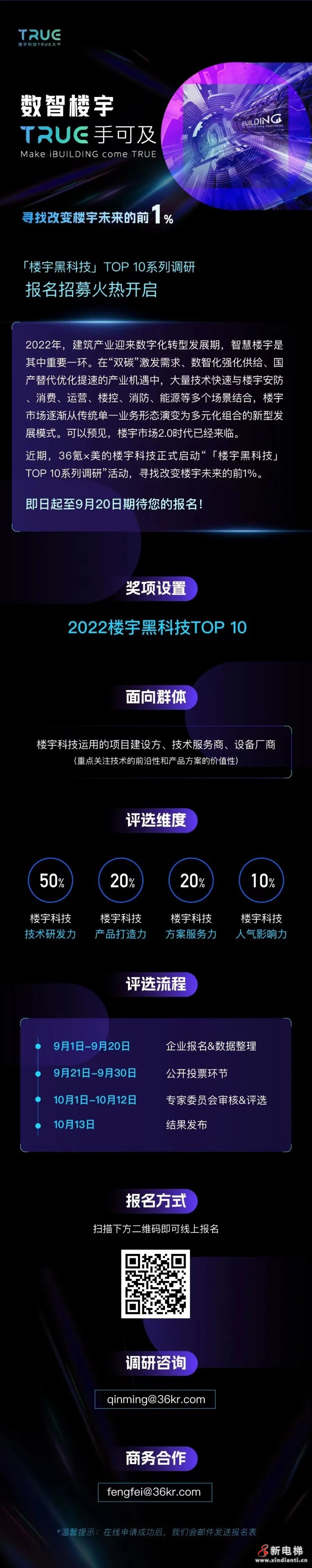 為此,美的樓宇科技×36氪正式啟動“「樓宇黑科技」TOP 10系列調(diào)研”招募活動,活動主要面向樓宇科技運用的項目建設方、技術(shù)服務商、設備廠商等,核心關(guān)注技術(shù)的前沿性和產(chǎn)品方案的價值性。