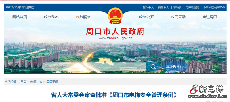 河南周口市出臺全省首部電梯安全管理?xiàng)l例