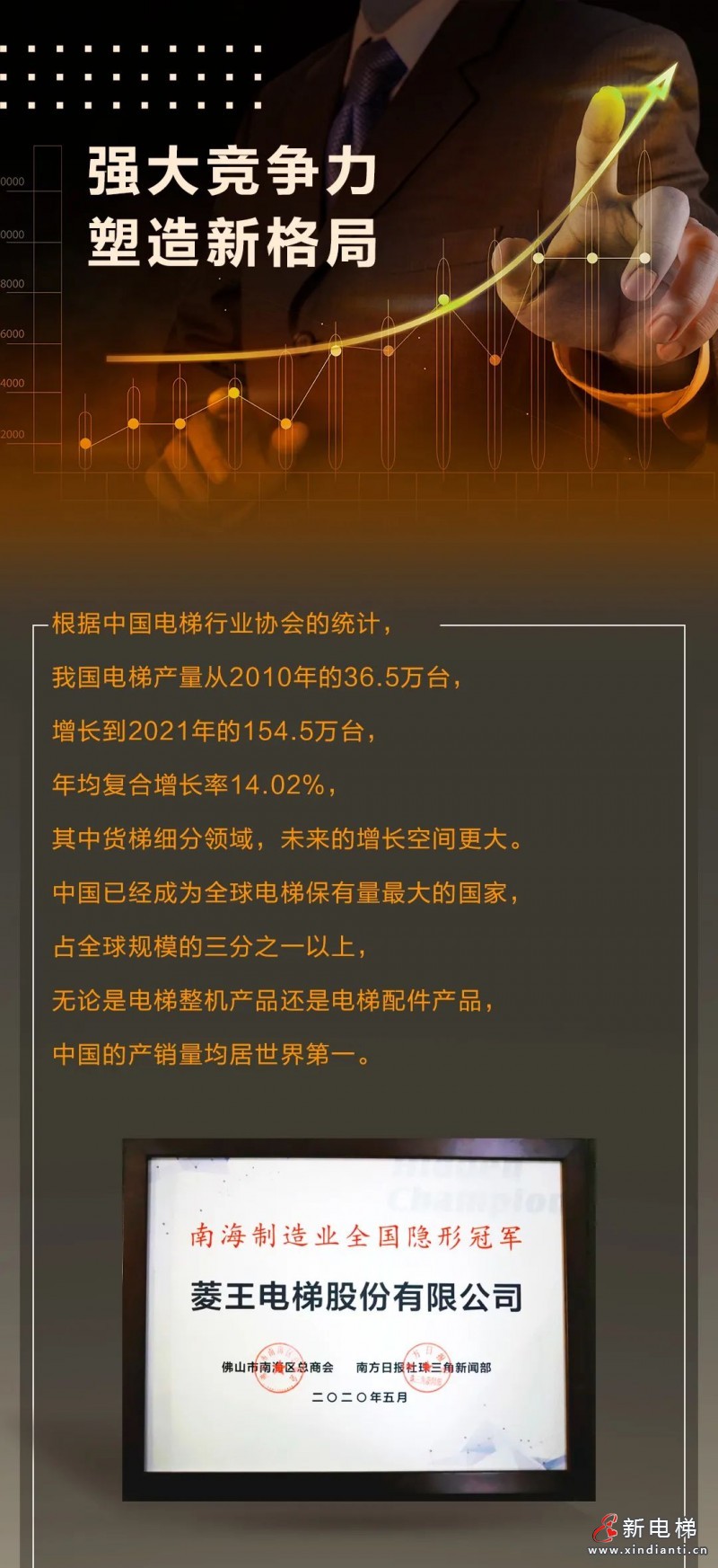 核心提示:根據(jù)中國電梯行業(yè)協(xié)會的統(tǒng)計(jì),我國電梯產(chǎn)量從2010年的36.5萬臺,增長到2021年的154.5萬臺,年均復(fù)合增長率14.02%,其中貨梯細(xì)分領(lǐng)域,未來的增長空間更大。