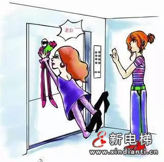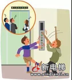 (注意!禁止?。╅T關閉的時候絕對不要奔跑著用手去擋正在關閉的電梯門,有可能被夾傷或者跌倒,也有可能和別人產(chǎn)生沖突。