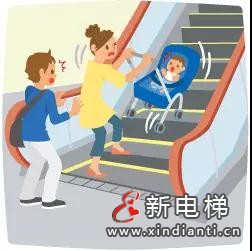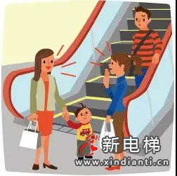 (危險!禁止!)小孩子一個人乘坐扶梯,一點小事就會很容易造成他的情緒崩潰,是非常危險的,所以小孩子乘坐扶梯一定要有大人陪同!