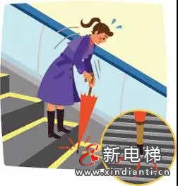 (注意?。。┐┲容^長的衣物的時候,千萬注意不要讓它接觸到扶梯的梳齒板,衣服一旦被卷進去是相當危險的。