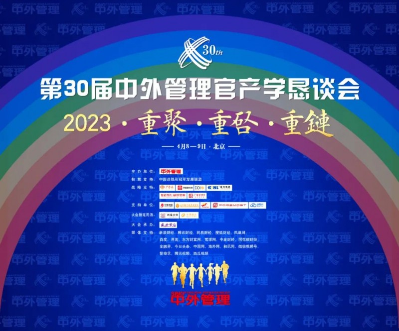 核心提示:疫情消散,花開(kāi)如約。2023年4月8-10日,由中外管理傳媒主辦的“2023:重聚·重啟·重鏈”第30屆中外管理官產(chǎn)學(xué)懇談會(huì)在北京隆重舉行。