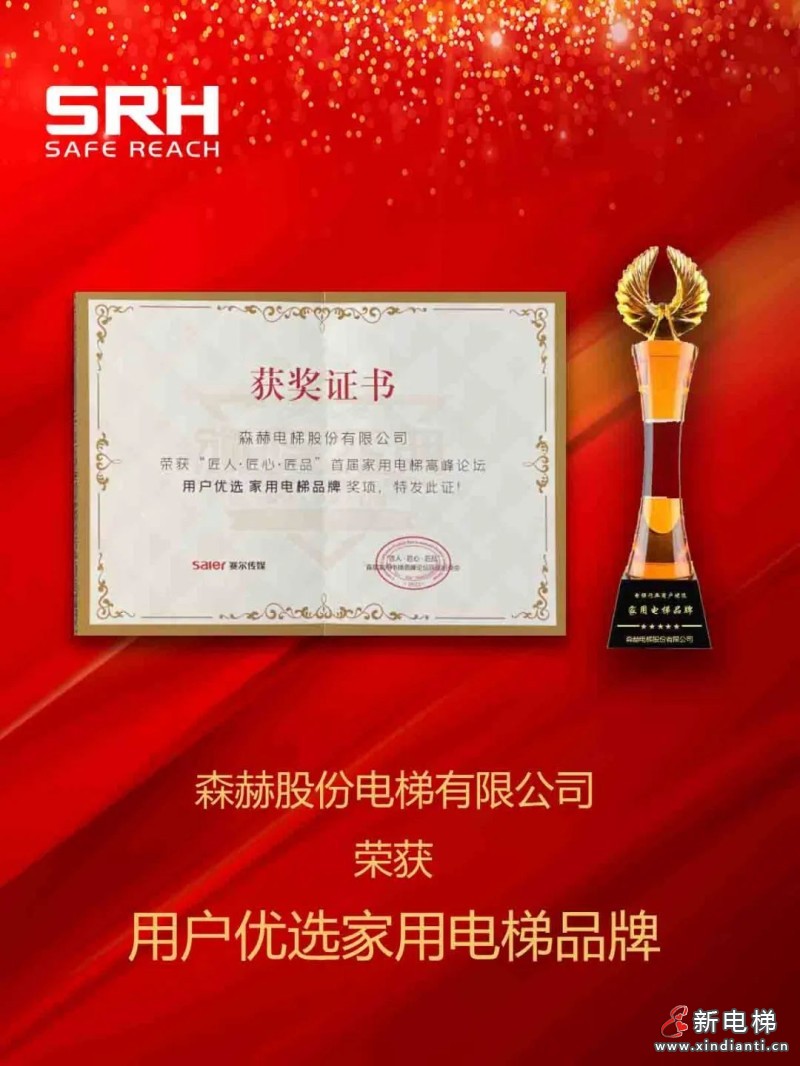 首屆家用電梯高峰論壇,森赫電梯斬獲“用戶優(yōu)選家用電梯品牌”榮譽(yù)