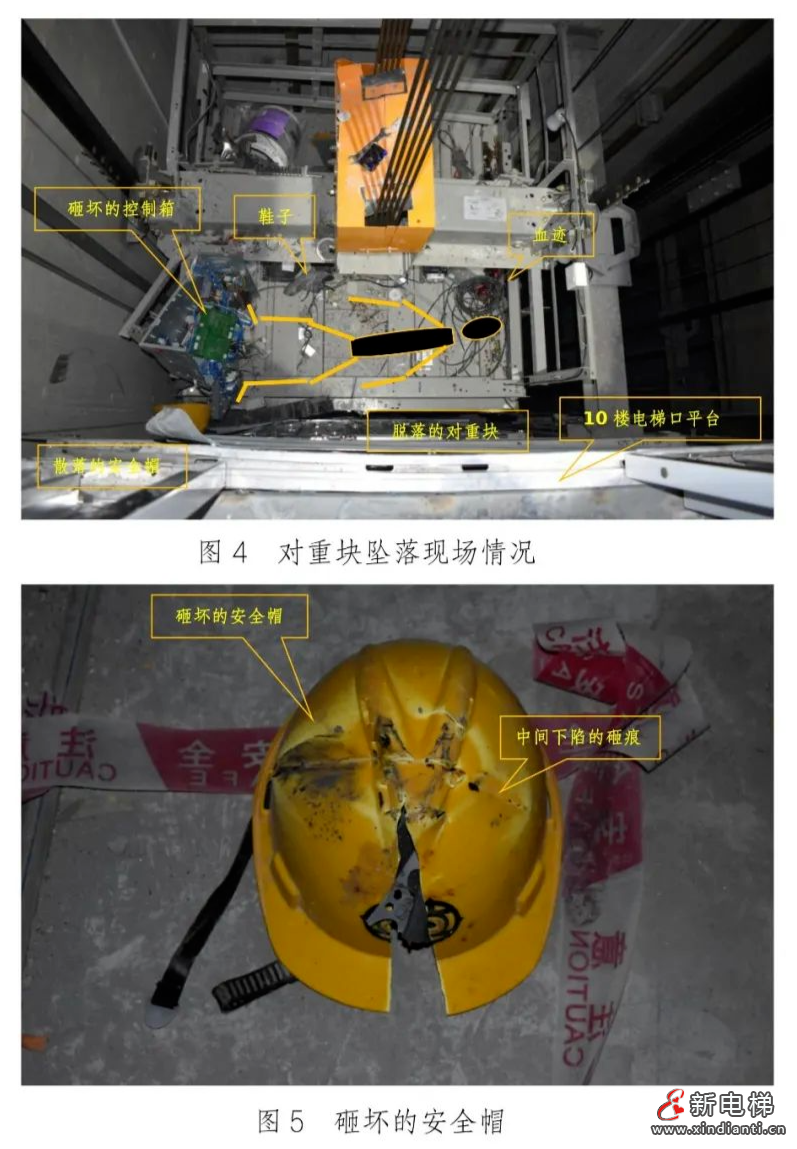 直接原因:一是施工人員安全意識(shí)淡薄 ,電梯安裝時(shí)未對電梯對重塊進(jìn)行固定 ;二是電梯井后壁遺留有突出的鋼 筋頭 ;作業(yè)人員在電梯轎廂頂上操作電梯上行時(shí) ,被突出的鋼筋頭剮蹭后脫落的對重塊砸中導(dǎo)致死亡。