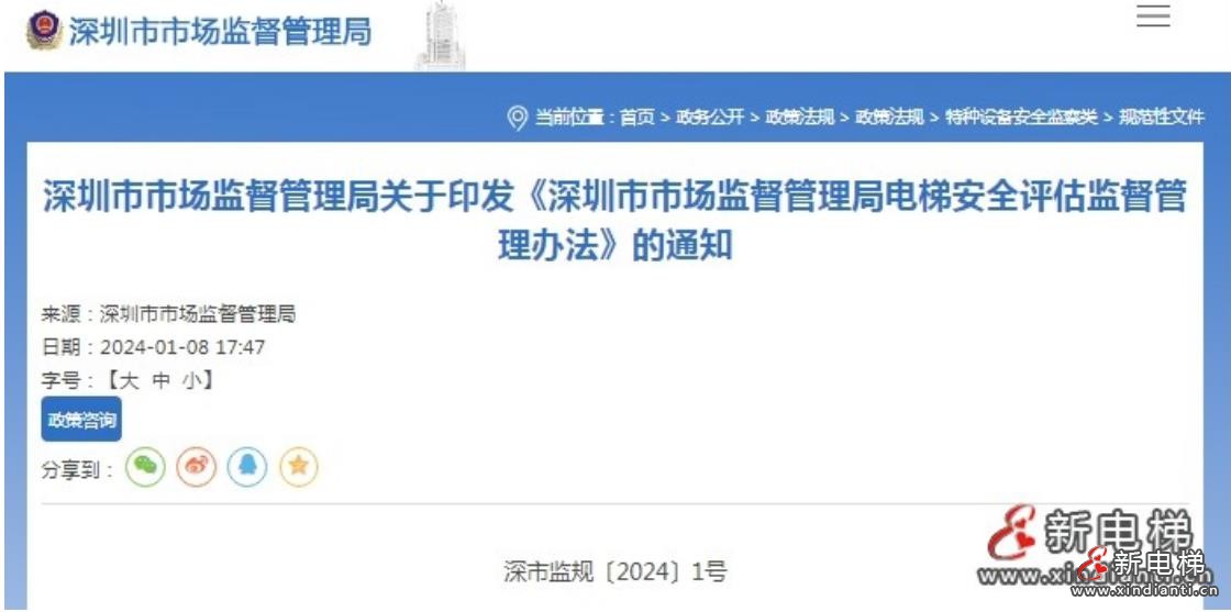 深圳市場監(jiān)督管理局:電梯安全評估監(jiān)督管理辦法!2月1日實施!
