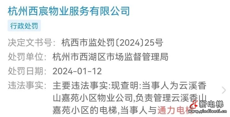 違法行為類型:杭州西宸物業(yè)服務有限公司違反特種設備安全管理規(guī)定案