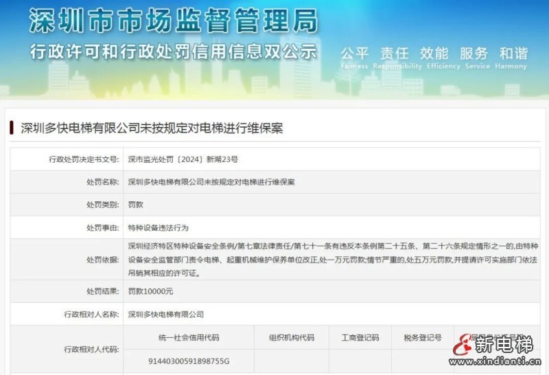 核心提示:深圳市場監(jiān)督管理局一口氣通報12起維保處罰案例!