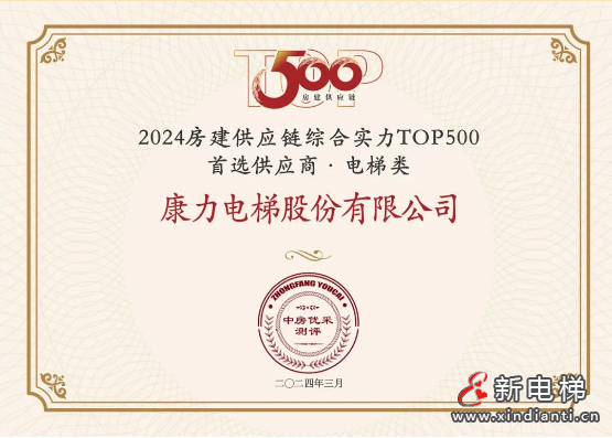 連續(xù)12年登榜!康力電梯榮膺“2024房建供應(yīng)鏈綜合實力TOP500-首選供應(yīng)商·電梯類”10強!