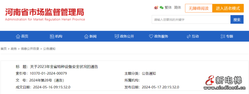 河南通報2023年全省特種設備安全狀況:全省電梯總量595338臺,同比增加5.8萬臺