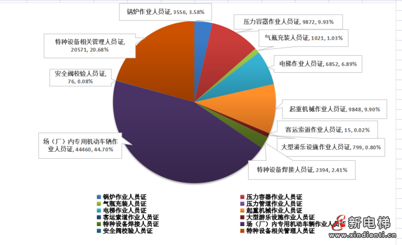 2023年全省共核發(fā)特種設(shè)備作業(yè)人員證9.95萬(wàn)張,各類特種設(shè)備作業(yè)人員證發(fā)證數(shù)量及所占比例見(jiàn)下圖: