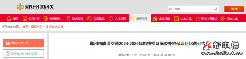 河南鄭州軌交發(fā)布公告,2009臺(tái)電梯自動(dòng)扶梯維保項(xiàng)目公開招標(biāo)