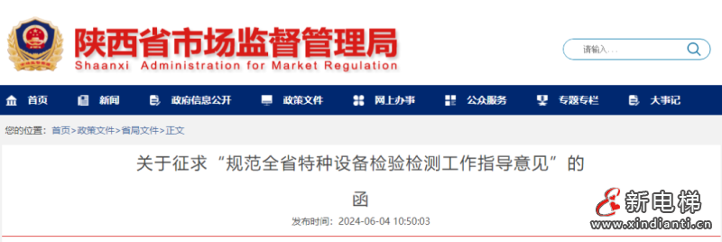 陜西省市場監(jiān)督管理局發(fā)布“規(guī)范全省特種設(shè)備檢驗(yàn)檢測工作指導(dǎo)意見”d,請各單位于2024年6月20日前將本行政區(qū)域內(nèi)征求的意見匯總報(bào)省局特設(shè)局。
