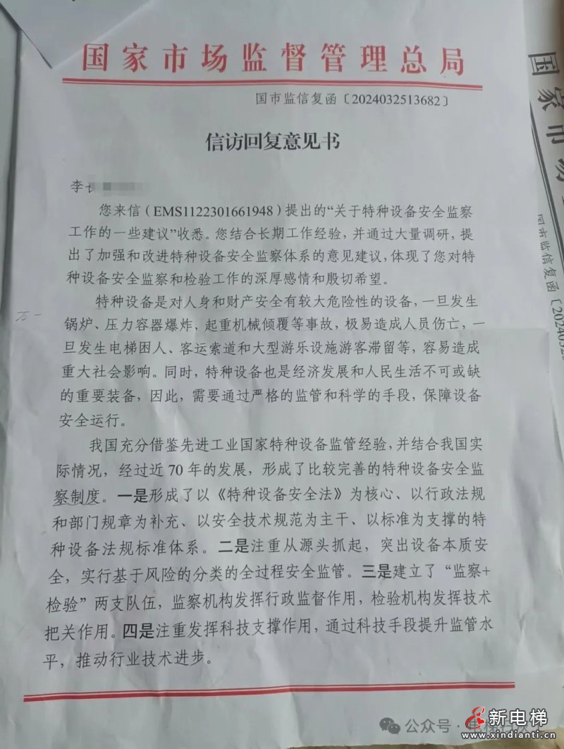 總局回復(fù)行業(yè)泰斗李老的信訪,明確當(dāng)前電梯監(jiān)管的先進(jìn)性