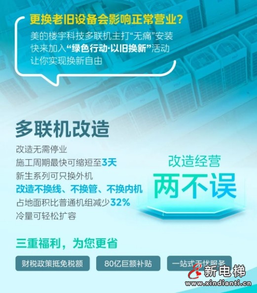 美的樓宇科技“綠色行動·以舊換新”活動持續(xù)進行中,支持多聯(lián)機、水機、熱泵、電梯、控制五大系列煥新,可享財稅政策抵免稅額、80億巨額補貼和免費的一站式無憂售后服務(wù),省錢、高效更安心!