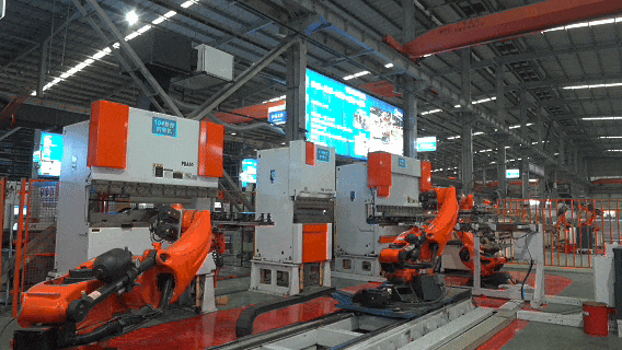 在門板生產(chǎn)工藝升級改造中,菱王引入行業(yè)高精尖代表的薩瓦尼尼柔性加工中心,實(shí)現(xiàn)沖壓、剪切和折彎鈑金的加工過程全自動;通過自研設(shè)計,以工業(yè)4.0為代表的庫卡機(jī)器人配套焊接線,結(jié)合數(shù)字化系統(tǒng),打造鈑金加工高速柔性生產(chǎn)線。同時,還建立原材料立體倉庫,通過設(shè)備聯(lián)機(jī)、工單管理、數(shù)字驅(qū)動,實(shí)現(xiàn)電梯門壁板從原材料調(diào)料、生產(chǎn)、碼垛全流程無人化、數(shù)智化生產(chǎn)。