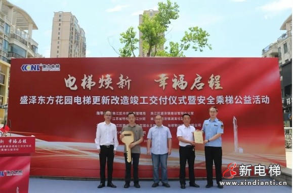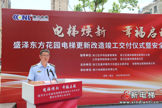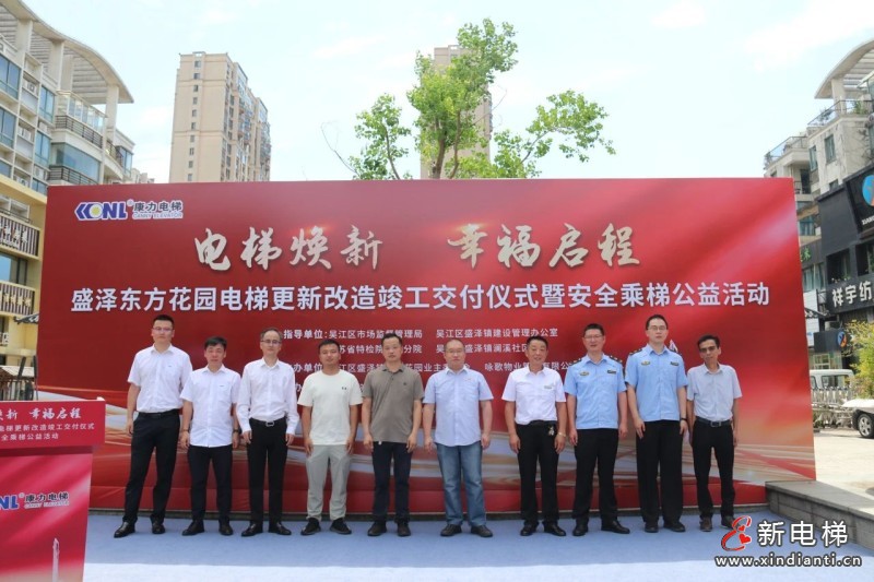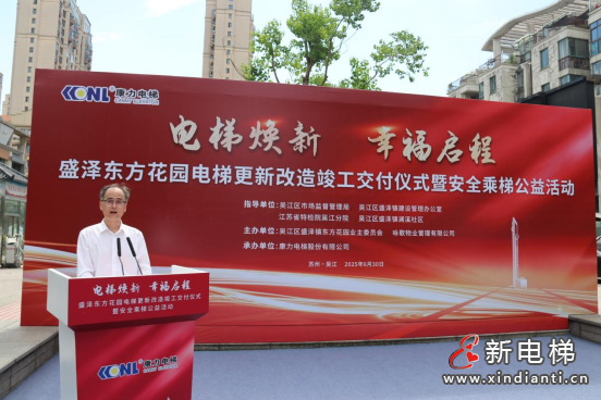 2025年6月30日,吳江區(qū)首批次國債支持老舊住宅電梯更新改造--盛澤東方花園29臺電梯更新改造工程正式交付。吳江區(qū)市場監(jiān)督管理局、吳江區(qū)盛澤鎮(zhèn)建設管理辦公室、江蘇省特檢院吳江分院、吳江區(qū)盛澤鎮(zhèn)瀾溪社區(qū)各級領導,東方花園業(yè)主代表、詠歌物業(yè)相關負責人、康力電梯相關負責人共計50余人,共同見證“電梯煥新·幸福啟程”。