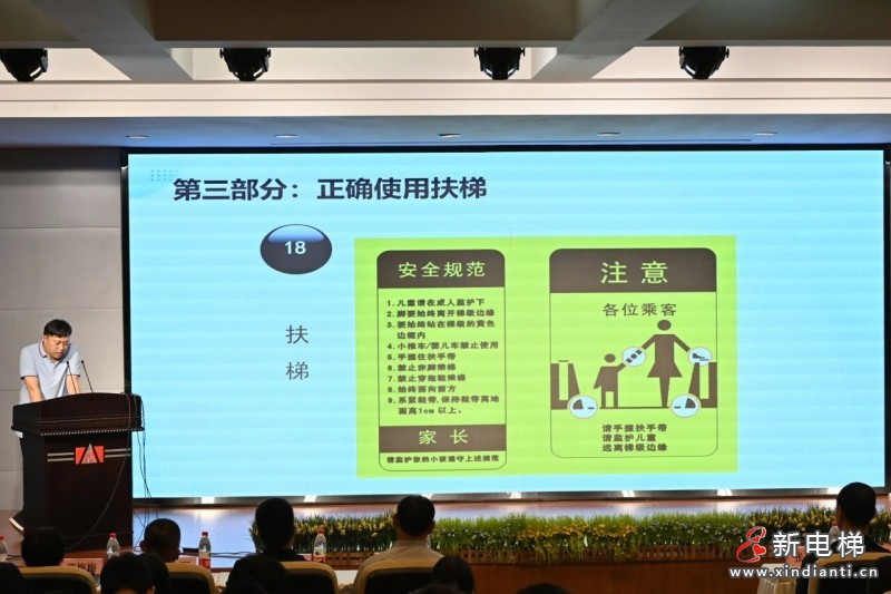 活動現(xiàn)場,沈陽遠(yuǎn)大智能交付中心技術(shù)部長楊升遠(yuǎn)率先通過視頻短片,直觀講解電梯與扶梯的基本原理——既播放了市場監(jiān)管局制作的“正確乘坐電扶梯”指導(dǎo)視頻,也展示了沈陽地鐵拍攝的“安全乘坐公共交通扶梯”案例,讓師生們快速理解乘梯核心常識。隨后,楊升遠(yuǎn)部長圍繞公眾關(guān)心的電梯安全問題展開講解,重點(diǎn)科普了“電梯是否會高速墜落”“被困電梯會窒息嗎”“為何不能用手擋電梯門”等常見誤區(qū),結(jié)合《不可忽略的電梯安全知識》中的“3重安全防護(hù)措施”“被困電梯4步自救法”等內(nèi)容,用通俗語言消除大家的乘梯顧慮。