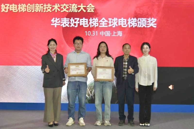 新技術(shù)、新產(chǎn)品獎,新電梯網(wǎng)總裁鄧麗麗、上海市電梯行業(yè)協(xié)會領(lǐng)導(dǎo)上臺頒獎