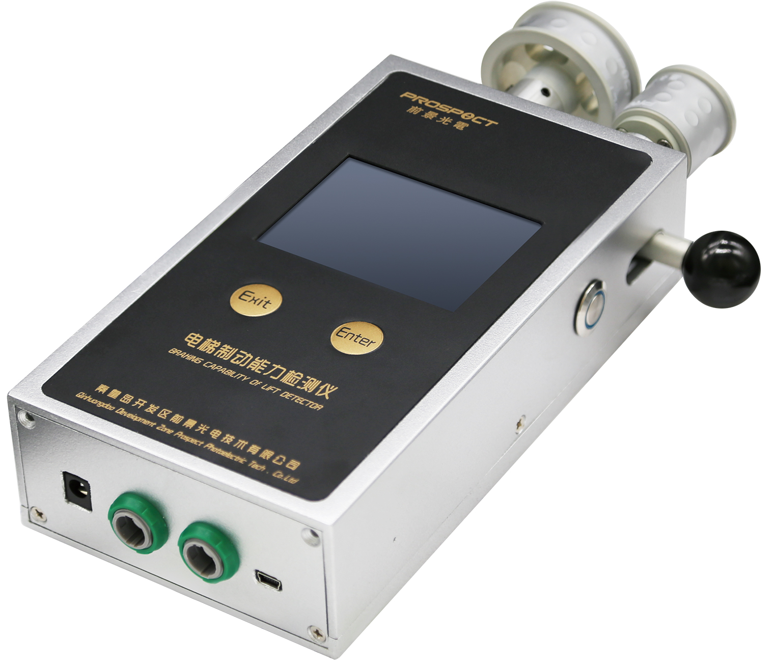 BC100電梯制動能力檢測儀是一種能夠檢測電梯制動能力是否合格的設(shè)備。設(shè)備由檢測手持終端和前端轉(zhuǎn)輪兩部分組成。檢測時,將前端轉(zhuǎn)輪旋轉(zhuǎn)靠近鋼絲繩,由鋼絲繩帶動前端轉(zhuǎn)輪轉(zhuǎn)動,當電梯達到額定梯速時發(fā)出電梯制動信號,測量鋼絲繩的行走距離,并在電梯停梯后,顯示并記錄檢測結(jié)果。