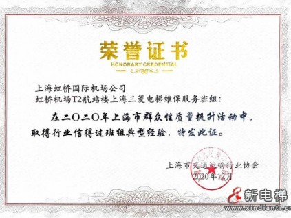 上海三菱虹橋機(jī)場(chǎng)T2航站樓維保服務(wù)班組榮獲2020年上海市群眾性質(zhì)量提升,行業(yè)質(zhì)量信得過(guò)班組稱(chēng)號(hào)。[詳情]