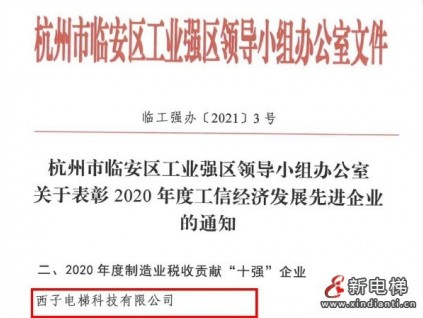 近日,根據(jù)《關(guān)于全面實(shí)施“新制造業(yè)計(jì)劃”推進(jìn)高質(zhì)量發(fā)展的實(shí)施細(xì)則》文件精神,杭州市臨安區(qū)對(duì)2020年度工信經(jīng)濟(jì)發(fā)展先進(jìn)企業(yè)進(jìn)行表彰,西子電梯科技有限公...[詳情]