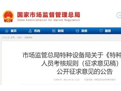 為進(jìn)一步規(guī)范特種設(shè)備檢驗(yàn)人員考核工作,按照特種設(shè)備檢驗(yàn)工作改革和特種設(shè)備行政許可改革要求,我局組織起草了《特種設(shè)備檢驗(yàn)人員考核規(guī)則(征求意見稿)》...[詳情]