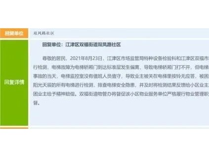 2021年9月23日,重慶市江津區(qū)雙福街道迪鑫陽光天宸小區(qū)發(fā)生電梯困人事故。該小區(qū)的物業(yè)管理單位及涉案電梯的使用單位為重慶*德物業(yè)管理有限公司,發(fā)生電梯困...[詳情]
