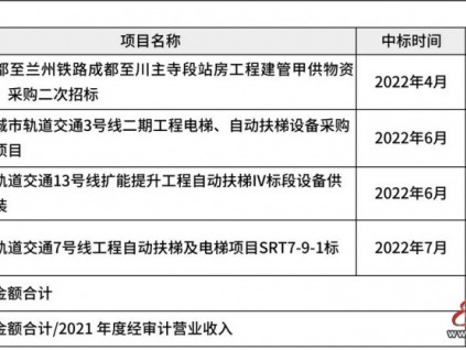 康力電梯股份有限公司就近期陸續(xù)獲取中標(biāo)信息的國(guó)內(nèi)軌道交通類項(xiàng)目、典型戰(zhàn)略客戶中標(biāo)的情況,自愿性披露相關(guān)信息。一、近期軌道交通類項(xiàng)目中標(biāo)情況。包括新建成都至蘭州鐵路成都至川主寺段站房工程建管甲供物資(電梯)采購(gòu)二次招標(biāo)。徐州市城市軌道交通3號(hào)線二期工程電梯、自動(dòng)扶梯設(shè)備采購(gòu)及安裝項(xiàng)目。北京市軌道交通13號(hào)線擴(kuò)能提升工程自動(dòng)扶梯IV標(biāo)段設(shè)備供貨及安裝。