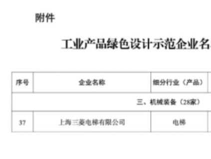 近日,國家工業(yè)和信息化部公布第四批工業(yè)產品綠色設計示范企業(yè)名單,閔行開發(fā)區(qū)企業(yè)上海三菱電梯有限公司通過層層嚴格評審,成功入選。[詳情]