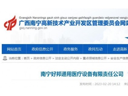 2022年12月16日15時(shí)30分許,在南寧好邦通用醫(yī)療設(shè)備有限責(zé)任公司發(fā)生一起高處墜落事故,造成1人死亡。[詳情]