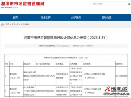 近日,湘潭市市場(chǎng)監(jiān)督管理局官網(wǎng)公示的行政處罰信息公示表(2023.1.31)顯示,永大電梯設(shè)備(中國(guó))有限公司湖南分公司因“違反特種設(shè)備安全法”被罰款1萬(wàn)元...[詳情]