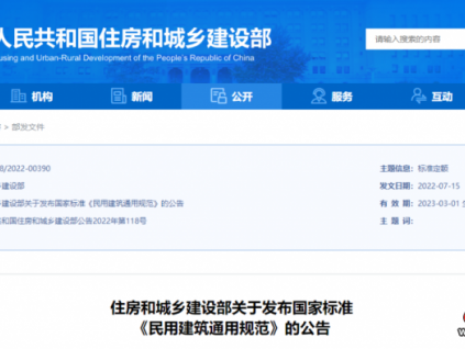 住房和城鄉(xiāng)建設(shè)部關(guān)于發(fā)布國家標(biāo)準(zhǔn)《民用建筑通用規(guī)范》的公告